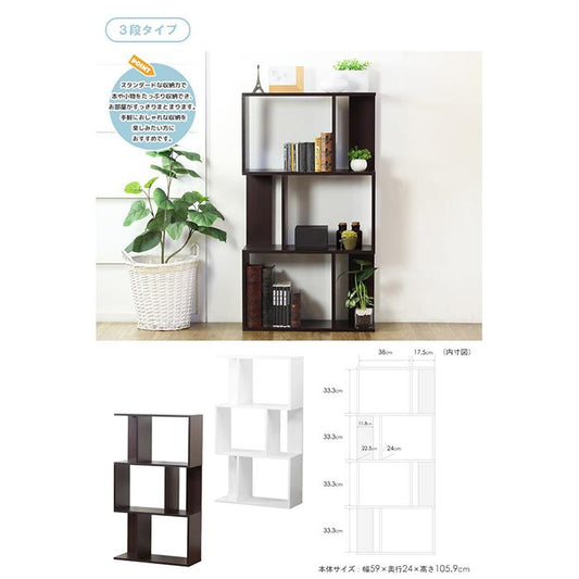 オープンラック 3段 ジーグ zieg iw-1205収納 収納家具 ラック 棚 本棚 シェルフ フリーラック 多目的ラック ウッドラック 飾り棚 木製 スリム 幅60 S字ラック