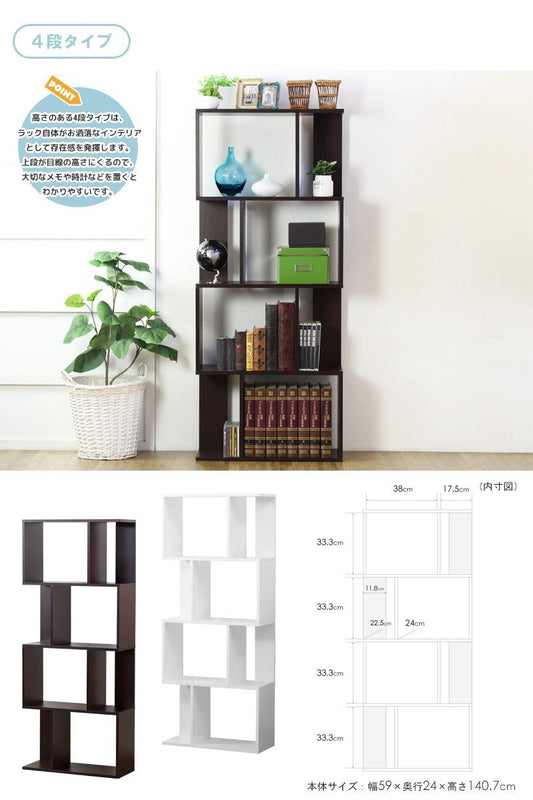 オープンラック 4段 ジーグ zieg iw-1405応収納 収納家具 ラック 棚 本棚 シェルフ フリーラック 多目的ラック ウッドラック 飾り棚 木製 スリム 幅60 S字ラック